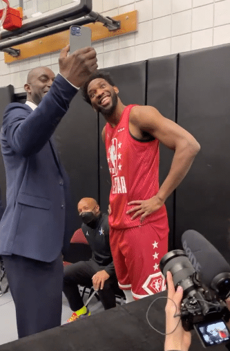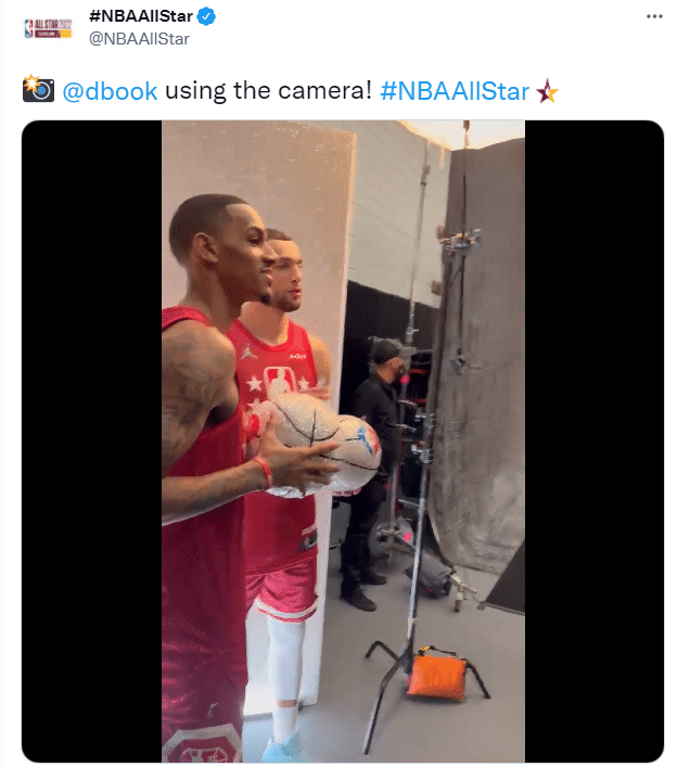 赛前NBA官方曝光詹姆斯队和杜兰特队的更衣室,詹姆斯和库里两人的更衣柜相邻,詹姆斯身旁另一个更衣柜属于加兰;东契奇、字母哥和约基奇的位置相邻,哈登的1号球衣挂在詹姆斯队,哈登来到克利夫兰,并且前往杜兰特队更衣室,与恩比德拥抱闲聊。