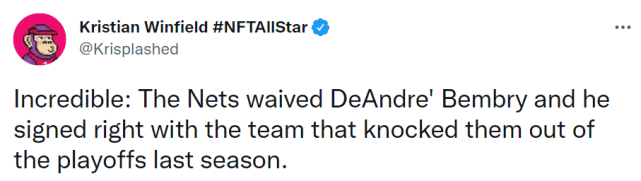本布里即将签约雄鹿的消息,引起篮网媒体和球迷的热议。篮网跟队记者Billy和Chris都认为这相当于篮网又输给雄鹿了,跟队记者Kristian则感慨难以置信,篮网裁掉本布里,他马上加盟了去年季后赛淘汰篮网的那支球队。