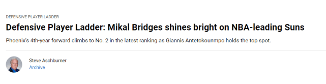 太阳的布里奇斯,正在得到越来越多的认可。这位防守侧翼表现稳定。谈到自己的防守榜样时,他谈到了两个人的名字。一位是托尼-阿伦,布里奇斯经常看他的录像,另一位是拉简-朗多,他赞叹于朗多的防守和球商,能够出色地阅读比赛。