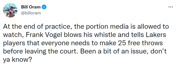 赛季至今,湖人的罚球命中率只有72.2%,位居联盟第29位。糟糕的罚球,也让他们付出不小的代价,上一场对勇士的比赛,最后时刻,湖人落后3分,詹姆斯获得3次罚球机会,但他没能把握住机会,未能将比赛拖入加时。全队的罚球表现也不好,沃格尔希望大家能对罚球更加重视。