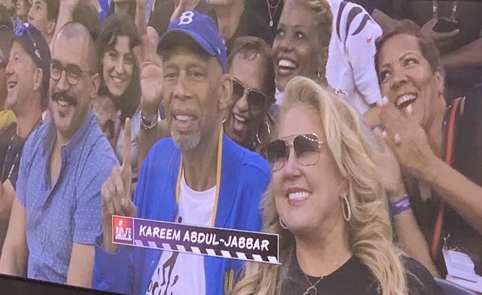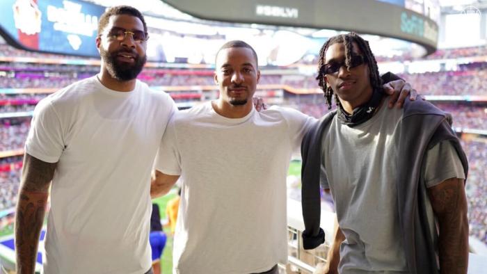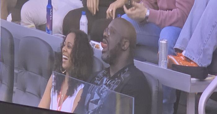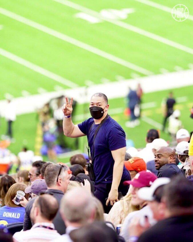除了詹姆斯,还有很多大腕来到现场观看超级碗——湖人名宿贾巴尔、奥尼尔、热火球星吉米-巴特勒以及快船球员小卡、乔治、鲍威尔、曼恩、小莫里斯等球员都来了,快船主帅泰伦卢也来了;当镜头给到奥尼尔时,奥胖的吐舌搞怪,小卡乔治身穿白色T恤帅气亮相。