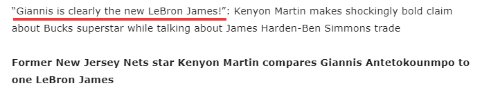 178直播02月14日讯 前NBA状元肯扬-马丁的言论引争议,他在节目中表示:很明显,扬尼斯是新的勒布朗,他每个赛季都能争夺常规赛MVP;换句话说,肯扬-马丁认为字母哥就是下一个詹姆斯。