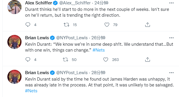 杜兰特本以为哈登一切都很好,但是当他受伤并且不在球队身边时,情况开始恶化;直到上周他开始看到这些报道突然出现时,他才知道哈登不开心。