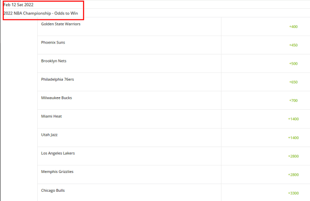 送走哈登的篮网,跌至赔率榜第3位,这也是他们赛季开始后的最低排名。前几个月,篮网一直霸占夺冠赔率榜的榜首,随着最近杜兰特的伤停和一波连败,他们一度掉到第二,而交易完成后,失去哈登的他们更是掉到了第3位,低于勇士和太阳。