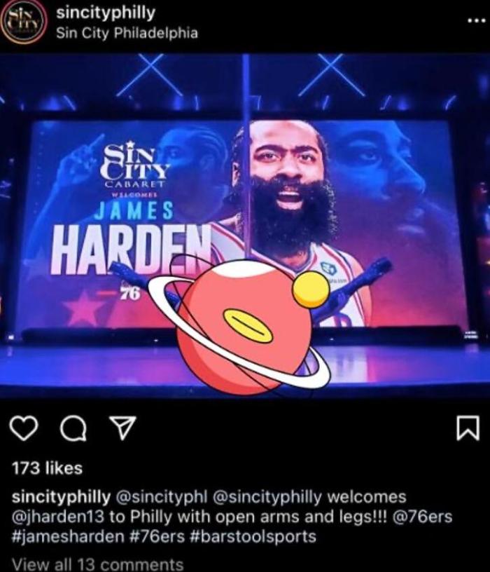 哈登离开篮网的原因是多方面的,而现在双方算是各取所需,他开心了,欧文开心了,本西蒙斯也能重新上场打球了!今日费城当地的一家夜店在自己的INS上发了一张欢迎哈登的海报,哈登咧着嘴身穿76人队的球衣,看样子大胡子又要嗨皮起来了?关于夜店关于哈登,不用细说,你懂得!