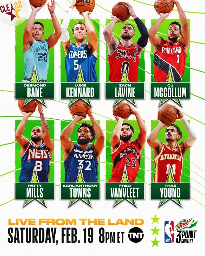 名单是:拉文,CJ-麦科勒姆,特雷-杨,唐斯,贝恩,范弗利特,肯纳德,米尔斯,同样很难预测冠军,遗憾的是水花兄弟都没有参赛!本赛季三分命中率最高的是热火队的PJ塔克,命中率46.9%,而参赛球员中命中率最高的是肯纳德的42.8%,其次是米尔斯的42.5%但是全明星三分赛跟比赛中投三分不一样!