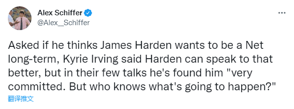 今日篮网惨败赛后,欧文回应未来哈登是否会留在篮网,欧文表示:至于那些媒体如何开始散播谣言,我真的不关心这些;在我们仅有的几次交流中,我发现哈登的态度非常坚定(留在篮网),我们只想让他坚守诺言。但谁知道会发生什么呢?
