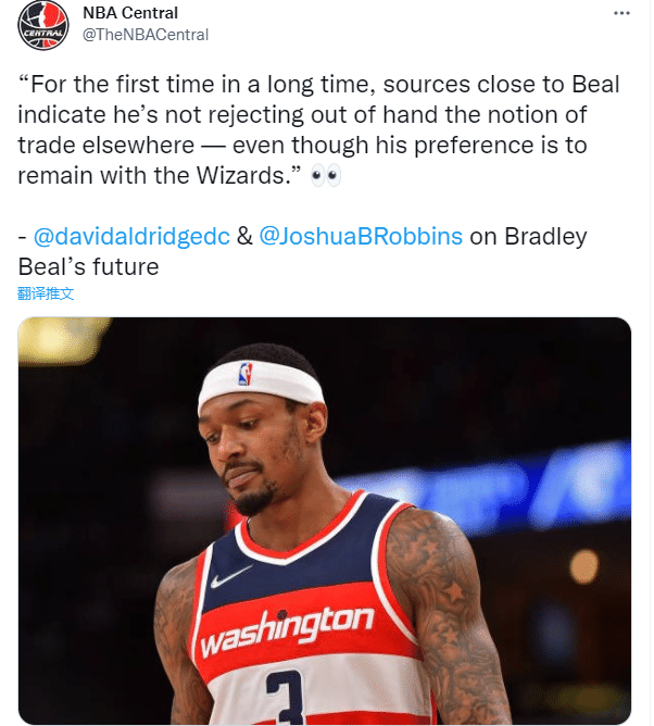 奇才目前并没有认真考虑交易布拉德利-比尔,即便奇才现在选择交易比尔,他们也得不到什么回报,因为比尔马上将成为自由球员;虽然比尔更希望留在奇才,但长期以来比尔都没有直接拒绝过前往其他球队打球的讨论。