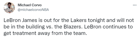 詹姆斯没有来到湖人主场,而是暂时离开球队并且接受治疗。