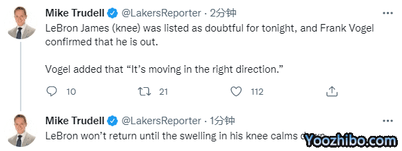 自从1月26日湖人复仇篮网之后,詹姆斯因伤连续缺席4场,膝盖仍未消肿;詹姆斯膝盖受伤的真正原因可能是膝盖后方有一个囊肿,若真是如此的话,詹姆斯可能会缺席更多的比赛,老詹的伤停对湖人的影响太大,本赛季此前缺席15场比赛,湖人仅仅拿到5胜10负的战绩。