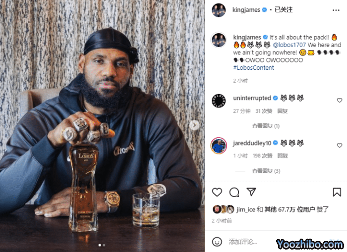 178直播02月02日讯 ,湖人当家球星勒布朗-詹姆斯更新社交媒体,在Ins上晒出自己戴着四枚总冠军戒指推广新酒的照片,4枚冠军戒指十分显眼;并且配文写道:这是有关族群的,我们就在这儿,哪儿也不会去(狼嚎OWOO OWOOOOOO)。
