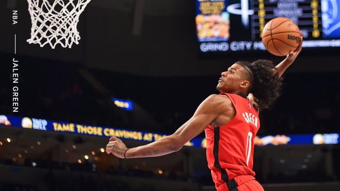 火箭榜眼杰伦-格林身体天赋爆表,本赛季多次在比赛中展现不俗的弹跳能力,本赛季已经扣了26次,为火箭出战35场比赛,场均上场30分钟拿到14.1分3.3篮板2.2助攻,年仅19岁,身高1米98司职后卫。