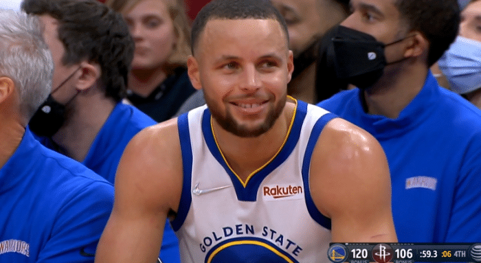 当最后阶段被换下之后,库里露出了笑容,这场比赛,他再度证明了自己,依旧有希望冲击常规赛MVP的荣誉。