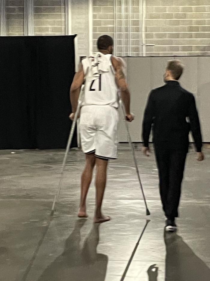 上一场篮网惜败勇士,阿德扭伤脚踝,一瘸一拐返回更衣室并提前退出比赛,赛后36岁阿德双手拄拐离开大通中心,脚踝伤势令人担忧;本赛季阿德宣布重返联盟,为篮网出战36场比赛,场均上场22.9分钟能够拿到13.4分5.6篮板和1.1盖帽,投篮命中率高达55.5%。