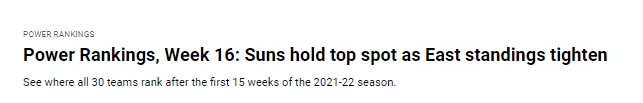 178直播02月01日讯 ,NBA官网公布最新一期球队战力榜,豪取10连胜的太阳稳居第一,灰熊和勇士依旧位列二三位,76人升到第四,篮网跌至第11,湖人排名掉到第20。
