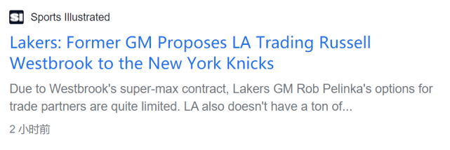 当然,这只是马克斯的个人建议。外界普遍认为,湖人交易威少的可能性很低,联盟对他感兴趣的球队几乎为零。
