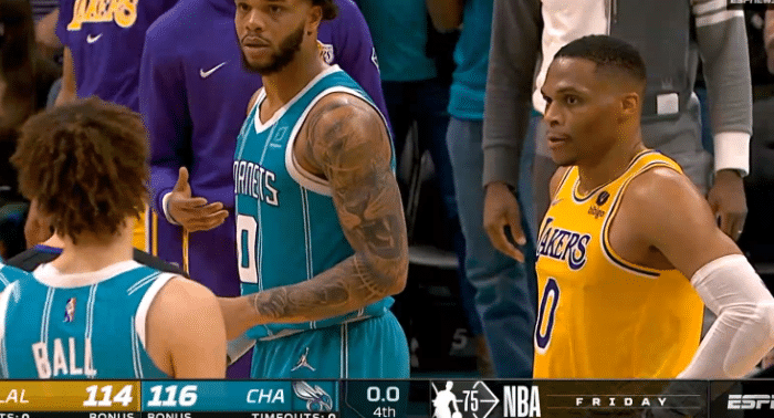 今天对阵黄蜂,威少上半场3投1中仅仅拿到5分,但下半场独砍30分打出侵略性,多次持球杀到禁区得分,关键时刻连突带投不断得分;目前湖人24胜26负排在西部第九位,下一场对阵老鹰,詹姆斯和浓眉有可能复出,而赛季至今,威少为湖人打满了50场。