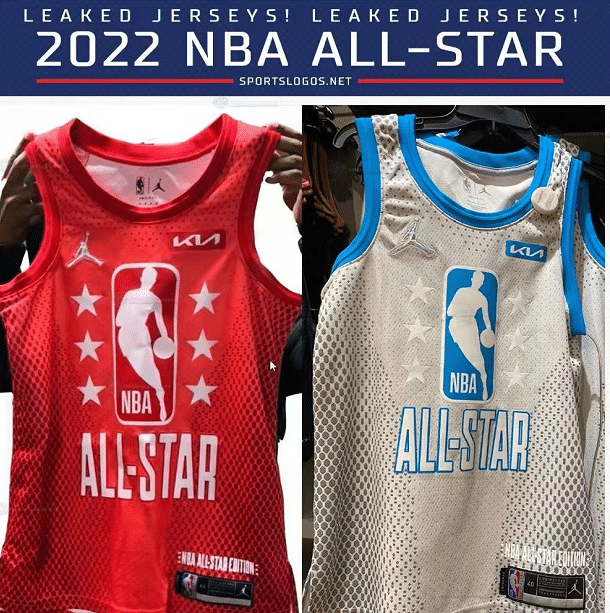 很快2022年全明星球衣曝光,不同于去年全明星东西部战袍以蓝色和黄色为主,今年全明星战袍颜色是红色和灰色,正面印有大大的NBA标志和全明星的字样,背后有75周年的元素。