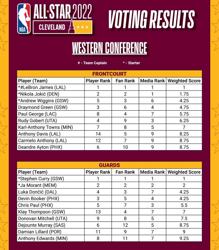 詹姆斯球迷得票联盟第一,媒体投票和球员投票也是也是排在西部前场第一,三项第一再次凸显老詹的不可思议,37岁仍旧是联盟第一人。