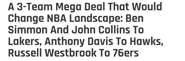 178直播01月27日讯 随着交易截止日的临近,越来越多的交易方案被美媒列出并讨论。北京时间1月27日,美媒Fadeaway World列出了一笔涉及3队超过10人的大交易方案,在这笔方案中,湖人把威少和浓眉都送走,获得4位新援来联手詹姆斯。
