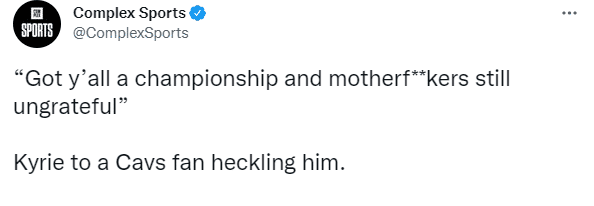 一开始欧文并没有回应,不过被一再质问下,欧文无奈地摇了摇头,并且爆粗回应:我帮你们拿了冠军,但你们TM还是忘恩负义。