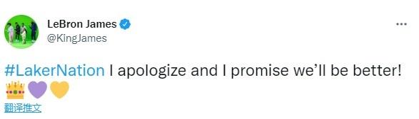 老詹在昨日输球后没有接受采访,提前选择回到更衣室然后离开球馆,不过随后就连续更新社媒,包括看NFL比赛的,也包括一些日常的!然后他在推特上给球迷道歉+许诺“#湖人国度,我道歉,我保证我们会变得更好!”算是作为一个领袖的担当吧,至少态度上绝对值得认可,不找客观原因,从自己做起!