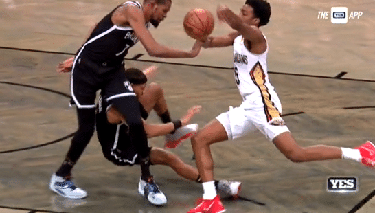 正所谓怕啥来啥,1月16日,篮网队对阵鹈鹕队,讲真的,杜兰特此前的身体状态并不是太好,在这样的一场比赛中,纳什应该让杜兰特继续轮休,可是因为哈登上一场独自带队的输球,篮网队压力太大,纳什依旧把杜兰特请了出来。