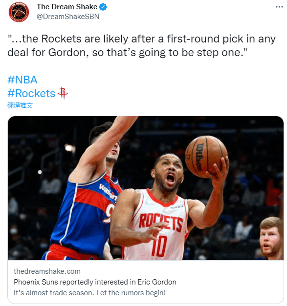 178直播01月16日讯 据美媒报道,联盟有多支季后赛级别的球队都在关注埃里克-戈登,其中太阳对戈登非常感兴趣,近期围绕戈登的大部分讨论都集中在太阳;火箭可能会在任何涉及戈登的交易中索要首轮选秀权。