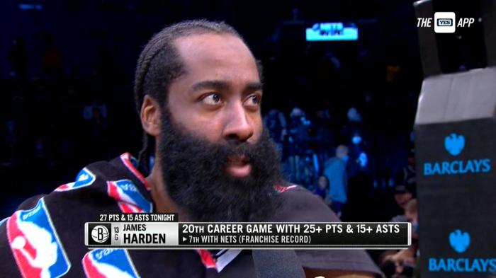 第三、哈登职业生涯第20次单场轰下25+15,篮网生涯7次做到