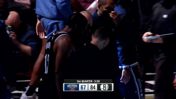 下半场,英格拉姆带领鹈鹕疯狂反扑,单节36-26追回10分;第三节3分39秒,哈登的手臂有些受伤,表情痛苦并且离场,所幸哈登伤势无碍,之后坐回替补席。