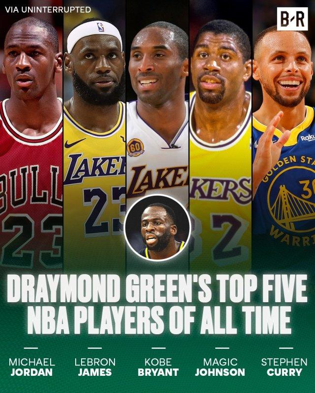 178直播01月15日讯 ,在最新一期的ThrowingBones节目上,勇士前锋德雷蒙德-格林评选了自己心目中的历史前五巨星,他给出的答案是:乔丹、詹姆斯、科比、魔术师和库里,引起球迷们的热议。