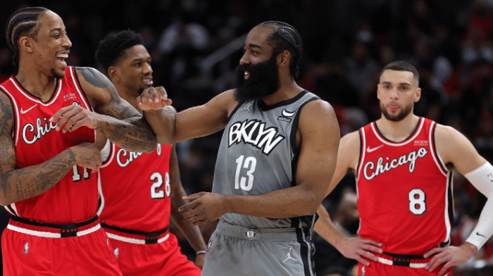 178直播01月13日讯 今天NBA常规赛结束了一场焦点战,东部第一的公牛对阵第二的篮网,最终篮网客场138-112大胜公牛,复仇成功。这场比赛篮网第三节在杜兰特的带领下扩大优势,末节哈登率队一波流提前收割比赛的胜利,比赛提前失去胜负悬念,篮网迎来了一场大胜,也复仇了此前双杀自己的公牛。此役公牛的扣篮王琼斯开场36秒伤退,篮网三巨头表现出色,他们合砍61分13篮板28次助攻,其中哈登砍下25分7篮板16助攻,拉文和德罗赞遗憾空砍41分。