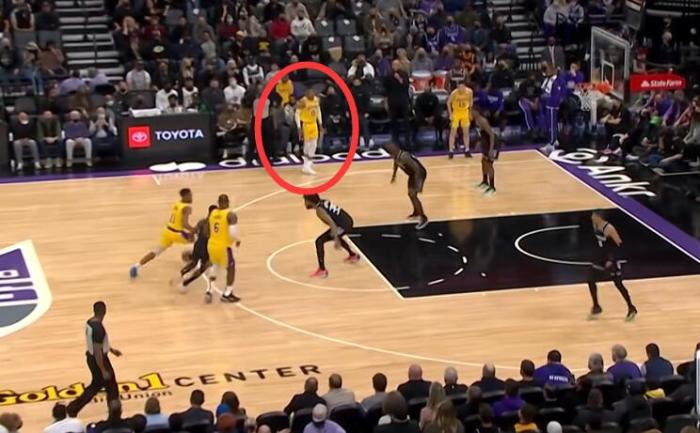 比赛第四节的一个画面,或许也证明了目前威少在湖人的地位。当时,蒙克和詹姆斯在弧顶位置发起挡拆。随后,蒙克左侧突破,詹姆斯向右侧弹开。此时,防守威少的巴恩斯回收内线,威少基本处于没人防守的大空位状态。但此时,蒙克对威少视而不见,将球重新传给老詹。
