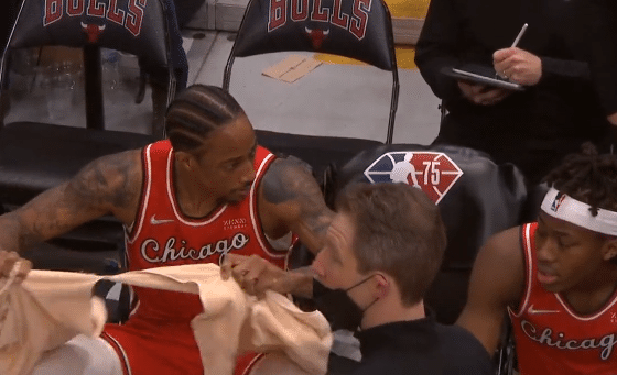 178直播01月13日讯 ,东部强强对决来了,公牛主场大战篮网,比赛期间,德罗赞怒了,坐在替补席怒撕毛巾,直接把毛巾撕成两半,并怒摔在地板上,如此一幕可以看出德罗赞内心的沮丧和不满,单节19-39狂输20分。