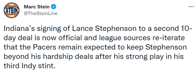 步行者留下史蒂芬森并不令人感到意外,让大家有些意外的是他们没有直接和史蒂芬森签约到赛季结束,而是签下了第二份10天合同。上周,美媒报道称步行者计划签约史蒂芬森到赛季结束,但步行者最终选择再签10天合同。