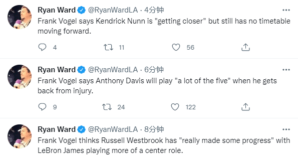 沃格尔还透露,今天纳恩进行了更多的训练,越来越接近复出,不过目前还没有纳恩复出的具体时间表,纳恩是湖人去年休赛期的重要引援,不过因膝盖骨挫伤而休战至今。