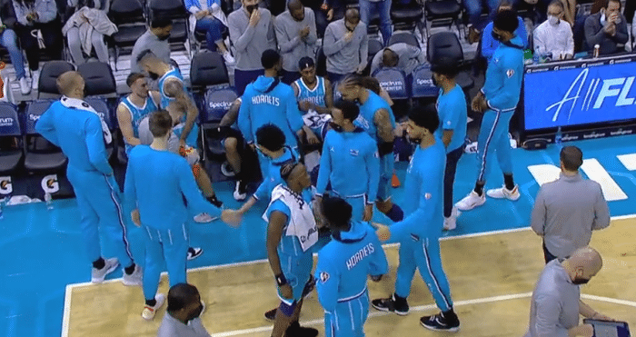 下半场的比赛开始后,两队依旧是打得十分焦灼,三节比赛中后段黄蜂轰出一波小高潮,普拉姆利补篮得手,罗齐尔造犯规三罚全中,随后三分投射也有,华盛顿上篮打成2+1,黄蜂取得了12分的领先优势,三节打完黄蜂领先9分,鲍尔单节轰下了16分。末节比赛开始后米德尔顿自己得到了11分,连助字平哥连拿4分,雄鹿追平比分,两队进入拉锯战,罗齐尔造犯规两罚全中,字母失误,布里奇斯篮下打中,关键时刻字母哥篮下打中并且造成犯规,字母加罚不中,马修斯抢到篮板暴扣得手,比分来到了99平,罗齐尔抛投得手,黄蜂领先2分,字母哥传球失误,比赛失去悬念,黄蜂战胜雄鹿。本场比赛雄鹿出现了20次失误,字母26分24板8助攻6失误,鲍尔23分,准绝杀。