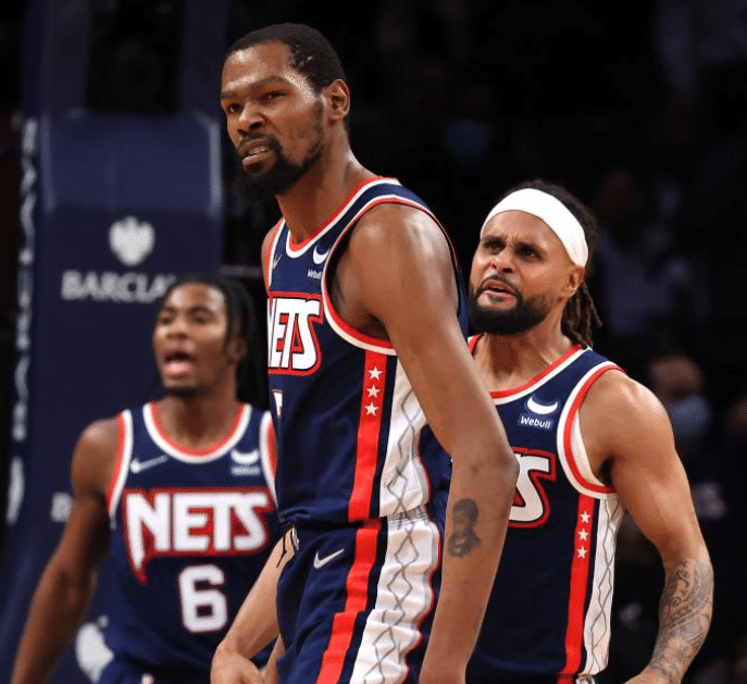 随着本场比赛至少拿到4分,杜兰特总得分达到24816分,从而正式超越尼克斯名宿帕特里克-尤因(24815分),升到历史得分榜第23位;杜兰特总得分排名现役第三,仅次于湖人两大巨星詹姆斯(36138分)和安东尼(27887分)。