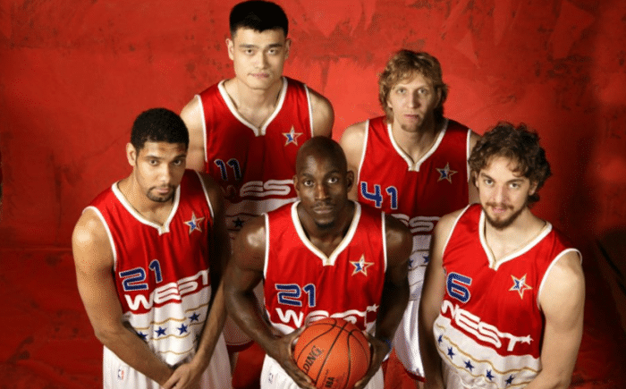 姚明和诺维茨基的情愫一点都不少,尽管姚明的NBA生涯仅有8年,那些年的姚麦还一直被诺维茨基的球队淘汰,但是作为西部的顶级内线,姚明、诺维茨基、邓肯、加内特与加索尔,真能让这一个时代的西部内线汗颜。
