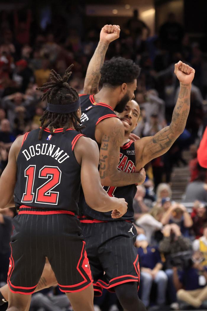 德罗赞压哨绝杀,握拳高举双手疯狂庆祝,公牛全队都冲过来,德罗赞躺在地板上尽享胜利;赛后德罗赞谈到制胜一击,阿赞表示:没有科比-怀特,我们赢不下这场比赛。我从不去想着已经错失的机会,我总是在考虑下一个机会,一旦它出现我会尽我所能抓住它。