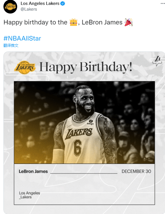 湖人官方、众美媒都恭喜老詹,魔术师约翰逊发推:祝贺我的兄弟37岁生日快乐,篮球之王;库兹马晒昔日夺冠照,配文:享受吧!我的兄弟。