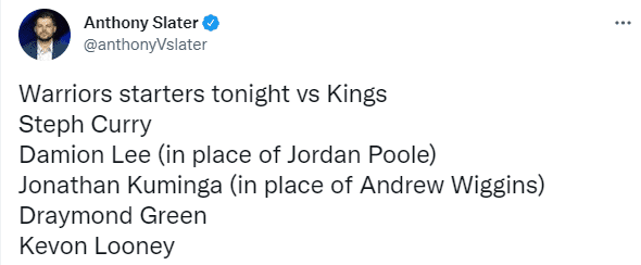 上一场做客多伦多猛龙,库里等人没有随队出征,而是留在湾区,而今天勇士主场对阵国王,库里确定出战;由于维金斯和普尔触发防疫协议,达米安-李和库明加顶替他俩首发,另外两位首发是格林和卢尼。