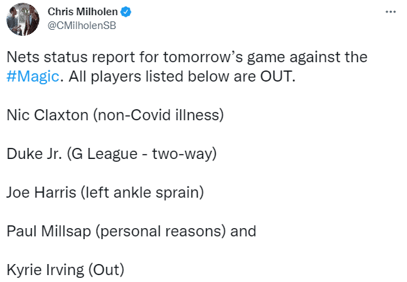 此前篮网战胜骑士赛后,纳什曾表示:米尔萨普因为个人原因将暂时离开球队,他可能在未来一段时间无法碰球了。