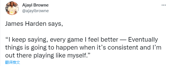赛后哈登回应自己的本场比赛:我一直都在说,我每场都在变得更好,当我打得像自己的时候,最终一切都会发生的。