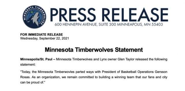 就像上面所说的,因为76人球员西蒙斯的问题,森林狼也卷入了其中,但是森林狼今天的另外一条消息得到了大家的重视。根据报道,森林狼官方发出声明,球队已与篮球运营总裁罗萨斯分道扬镳。而对于森林狼的球员来说,他们和运营总裁罗萨斯的感情非常好,对此才会有后来唐斯的发声,随后森林狼当家球星唐斯也更新了个人推特疑似回应罗萨斯的离职。唐斯简短地写道:“我去?发生什么了(wtf...)”。