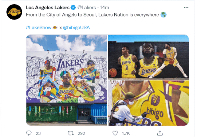 178直播9月23日讯 ,湖人官方晒出了两大主题壁画,并表示一幅壁画位于美国的洛杉矶,另一幅壁画则位于韩国的首尔。他们晒出了两幅壁画的具体位置,供两地的湖人球迷前往参观欣赏。官方配文写道:“从天使之城到首尔,湖人国度遍布全世界。”近日,韩国某品牌签约湖人,成为新赛季球衣的广告赞助商,据悉合同金额高达5年1亿美元。