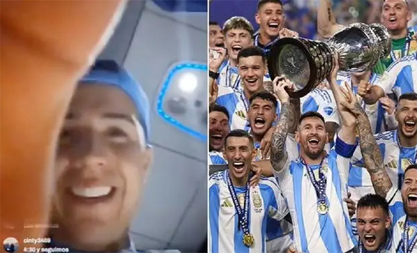 在此前的美洲杯决赛中,阿根廷队经过加时赛鏖战,1-0绝杀了哥伦比亚队,成功卫冕美洲杯冠军,并且实现了大赛“3连冠”伟业。然而在赢得美洲杯冠军之后,社交媒体上出现了阿根廷球员,庆祝他们最新冠军的争议镜头。