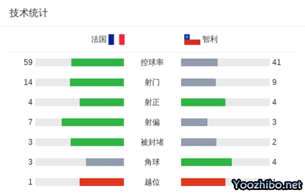 右路弧顶内切横传给到福法纳远射破门,法国1-1智利。