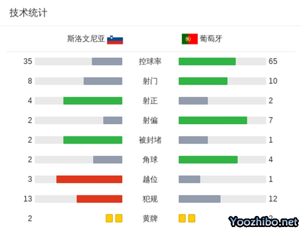 全场比赛结束,葡萄牙0-2斯洛文尼亚。
